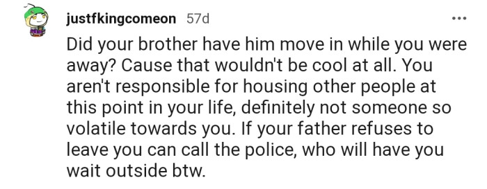 Some commenters even shared concerns about OP’s brother colluding with their dad to give him a space in the house.