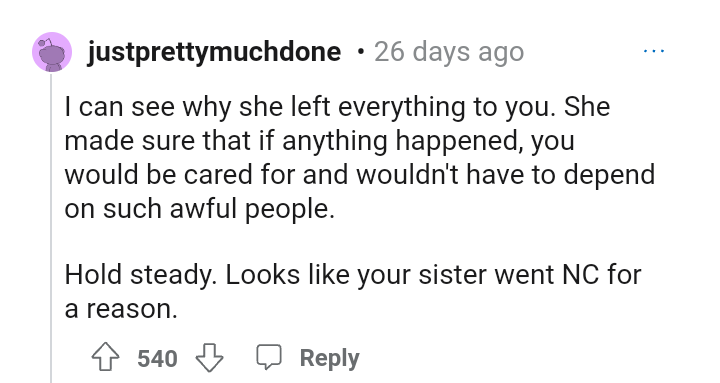 In a story that was shared on Reddit, a college student recounts how her elder sister died of a heart condition. Upon her sister's death, it was discovered that she left all her assets to her, without leaving anything for their parents.