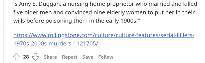 Why do you think there are so few female serial killers? Comment down your thoughts, or share this thread for all your family and friends to see!