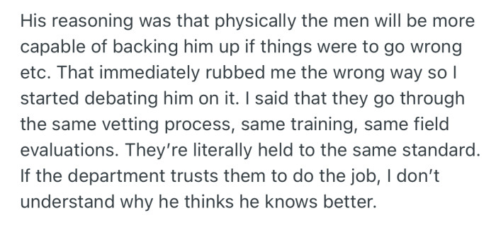 Woman Calls Out Cop For Bias After He Admits Trusting Male Colleagues More