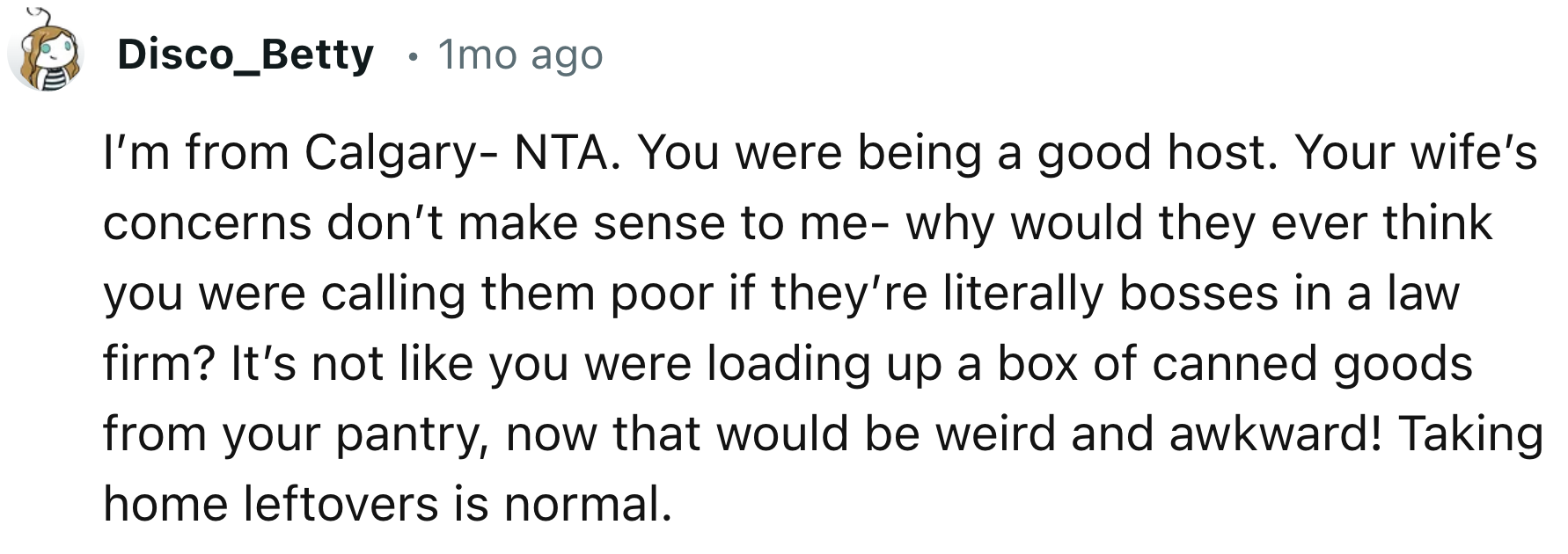 In his mind, offering leftovers was simply a gesture of hospitality, devoid of any ulterior motives. However, to his surprise, his wife's reaction was less than enthusiastic.