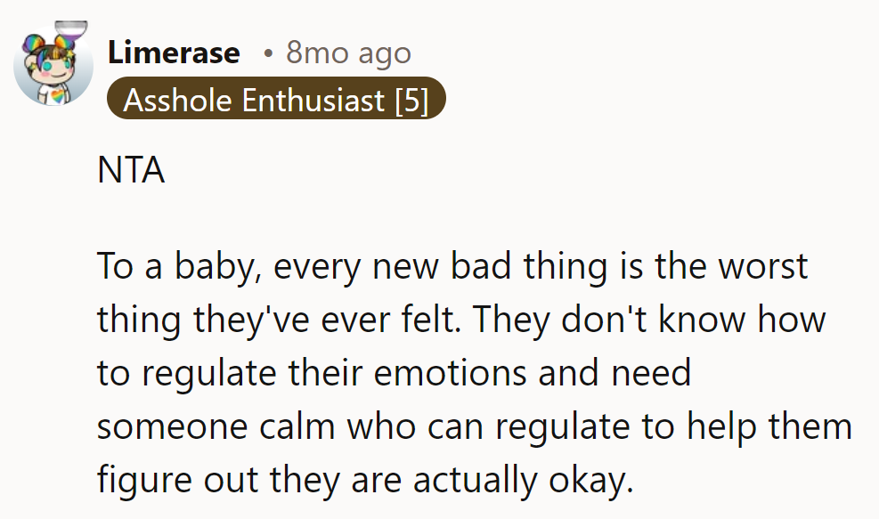 Comforting the tiny human: a noble act. Being a jerk? Not so much.